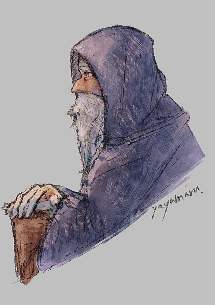 以前このブログでもプレイ日記をつけさせてもらった、ダンジョンアンティーカ(通称:ダンティカ)のチュートリアルの爺さんを描いた。